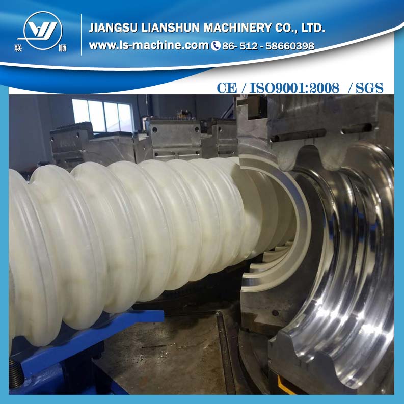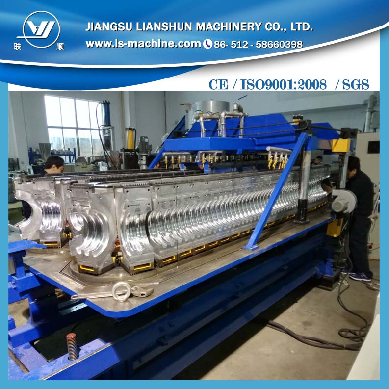 該生產(chǎn)線是以HDPE/PP為原料,所生產(chǎn)的雙壁波紋管內(nèi)壁光滑平整,外壁呈梯形波紋狀,除了具有普通塑料管所具有的耐腐蝕性好、絕緣性高、流動阻力小等特點以外,還因特殊的內(nèi)外壁中空環(huán)形結(jié)構(gòu),使其具有環(huán)剛度大、質(zhì)量輕、耐高壓、韌性好、耐磨、耐沖擊性強、不易破損、施工方便、安裝成本低、使用壽命長等特點。該雙壁波紋管一般采用擴口承插和密封圈連接,可以有效防止熱脹冷縮的影響,被廣泛應(yīng)用于公路、鐵路路基、地鐵工程、廢棄物填埋場、隧道、綠化帶、運動場及含水量偏高引起的邊坡防護等排水領(lǐng)域。