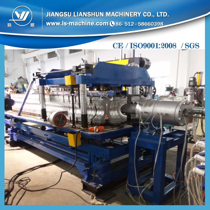 3. 波紋管成型機:采用臥式結(jié)構(gòu),鏈式傳動設(shè)計,配有開放式水冷卻系統(tǒng)以及真空成型系統(tǒng),可保證連續(xù)生產(chǎn)時較高的生產(chǎn)速度。